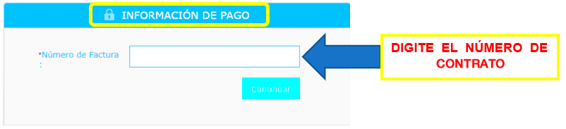 - Cuando esté en la sección de pagos, ubicarse en “INFORMACIÓN DE PAGO” e ingresar su número de factura.